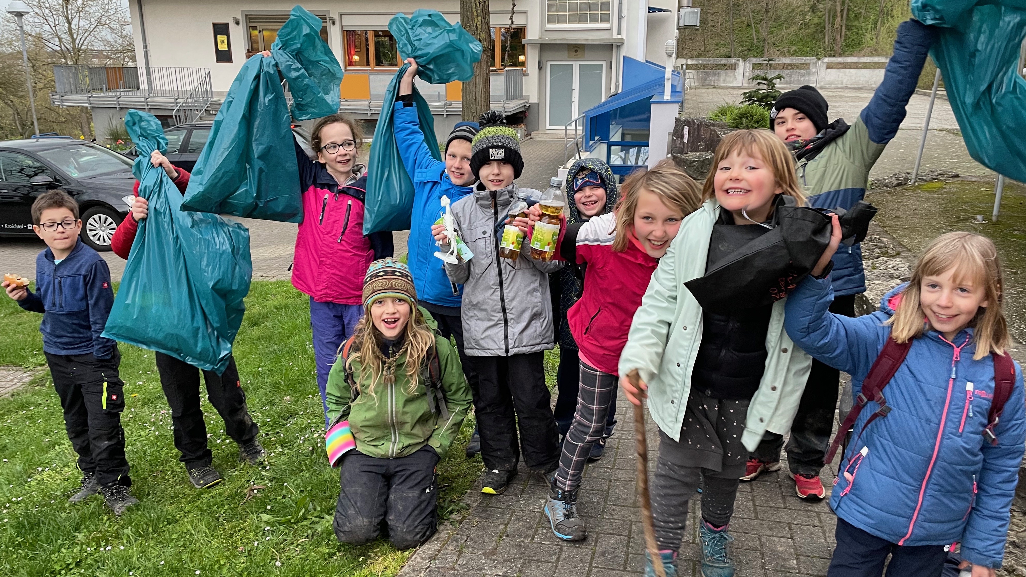 Am 23.03.2024 trafen sich die Umweltdetektive, um rund um das Naturfreundehaus und den umliegenden Wald Müll zu sammeln. Bevor es losging,